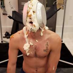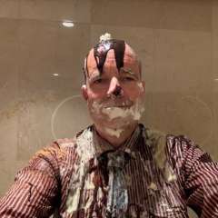 Pieguyss was surprised by Seangunge with a big sloppy cream pie to the face